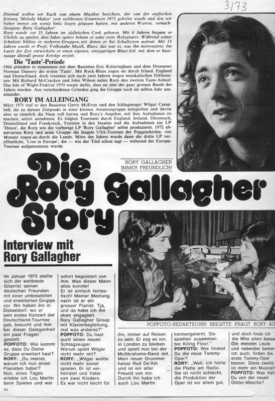 Interview with Rory Gallagher in March 1973 issue of Popfoto