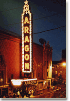Considered one of the “world’s most beautiful ballrooms,” Chicago’s Aragon Ballroom was built in 1926 as a venue for ballroom dancing, and quickly became a focal point for the dance hall culture.  The ballroom was designed by Huszagh & Hill for the Karzas brothers at a cost of over 2 million dollars, and featured a huge floating dance floor, surrounded by archways of Moorish design with Corinthian columns supporting fanciful facades of towers and balconies, palm trees and terra cotta roofs, making it look like the courtyard of a 15th century spanish palace.